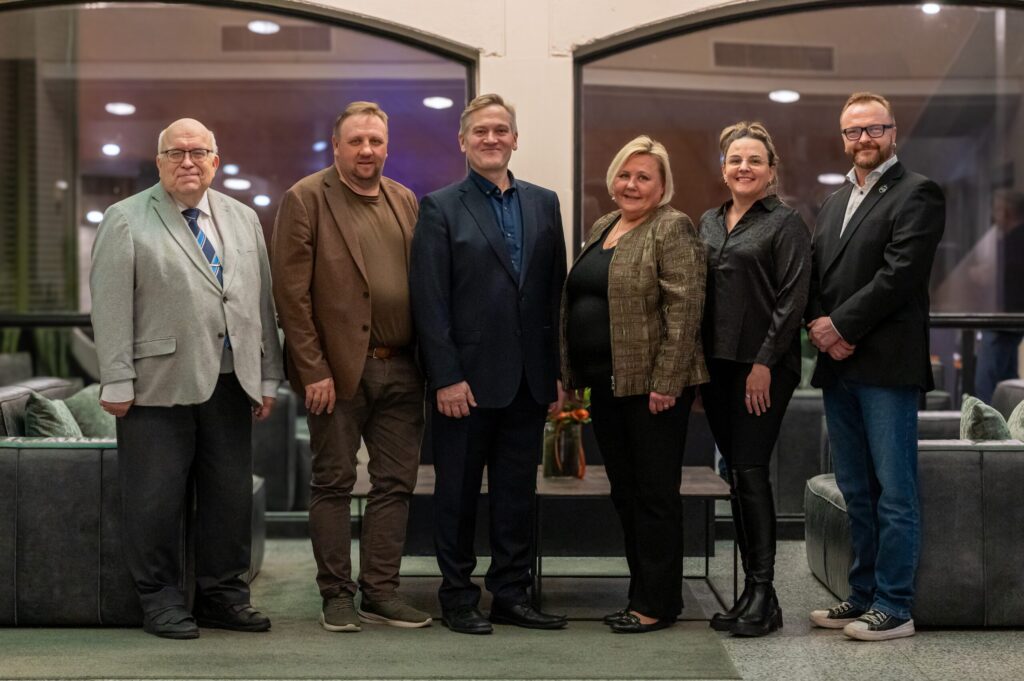 Kuvassa vasemmalta Antero Rytkölä, Marko Mäkinen, Matti Hiekka (hallituksen puheenjohtaja), Marjo Helin, Merja Sammi ja Antti Läykki.